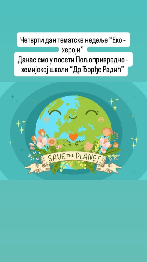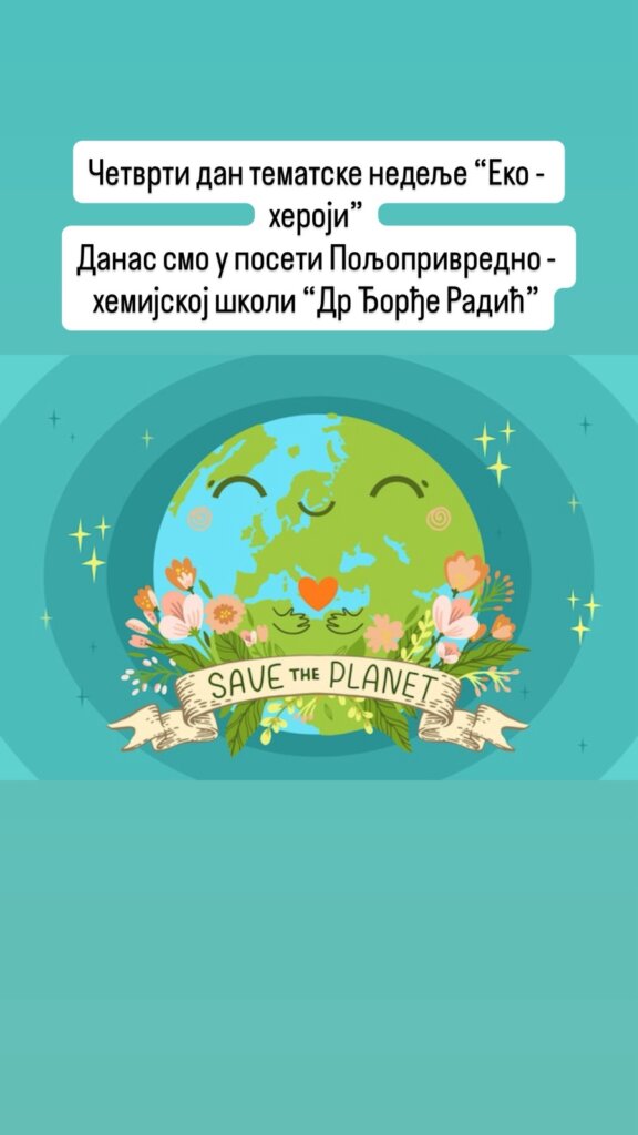 Четврти дан тематске недеље обележили смо посетом Пољопривредно – хемијској школи “Др Ђорђе Радић”. Наши ученици су у пратњи наставнице историје и педагога учествовали у радионици о биодиверзитету која је била усмерена на едукацију и значају очувања природе, екосистема и угрожених врста.