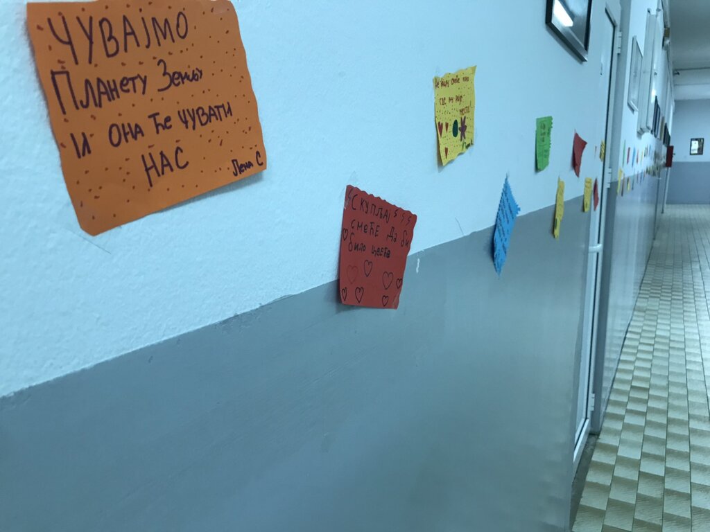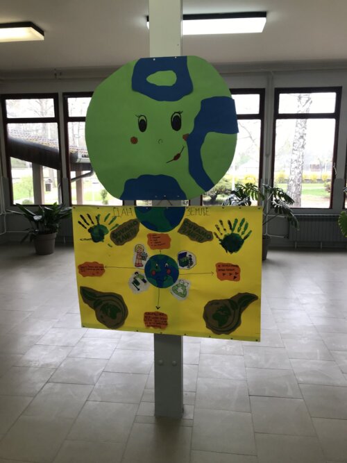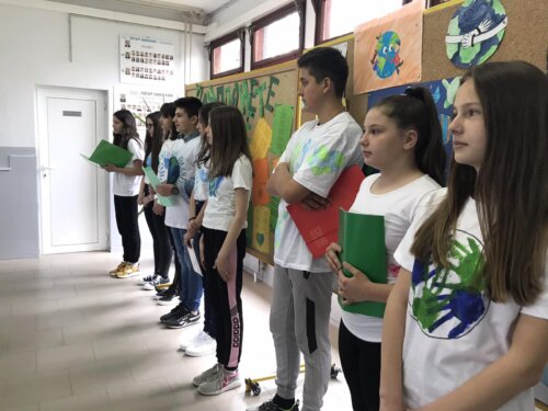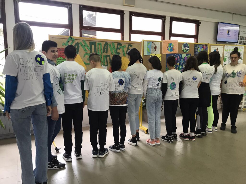 Наставница географије Весна Јокановић, је са својим колегама, наставником биологије Слободаном Сташевићем, наставницом ликовне културе Сањом Димитријевић, наставницом историје Зорицом Шћепановић и наставницом српског језика Драганом Танасковић, организиовала бројне активности за наше ученике. Приредба је отворена презентацијом на којој су приказане информације о планети Земљи пропраћене занимљивим фотографијама. Потом су ученици рецитовали песме посвећене нашој планети и њеном очувању, а сам крај обележен је симболично, заједничким певањем песме Љубивоја Ршумовића „Домовина се брани лепотом“. Ученици шестог, седмог и осмог разреда су протеклих дана израђивали хамере и ликовне радове, осликавали мајице и истраживали податке везане за очување планете Земље. У ходницима су истакнуте бројне еко-поруке које су проналазили и записивали. На овај начин наши ученици поручују да сви подједнако морамо водити рачуна о Земљи јер је она дом свих нас.