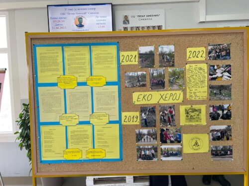 Ученици и наставници наше школе и ове године део су светске акције обележавања Дана плантете Земље. Овај дан се традиционално обележава 22. априла већ неколико деценија. У оквиру тематске недеље под називом ,,Еко-херој“, наставница Весна Јокановић је са ученицима виших разреда и својим колегама прирпремила богат програм поводом празника наше планете.