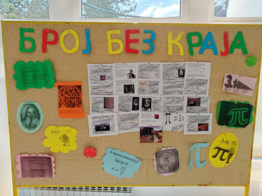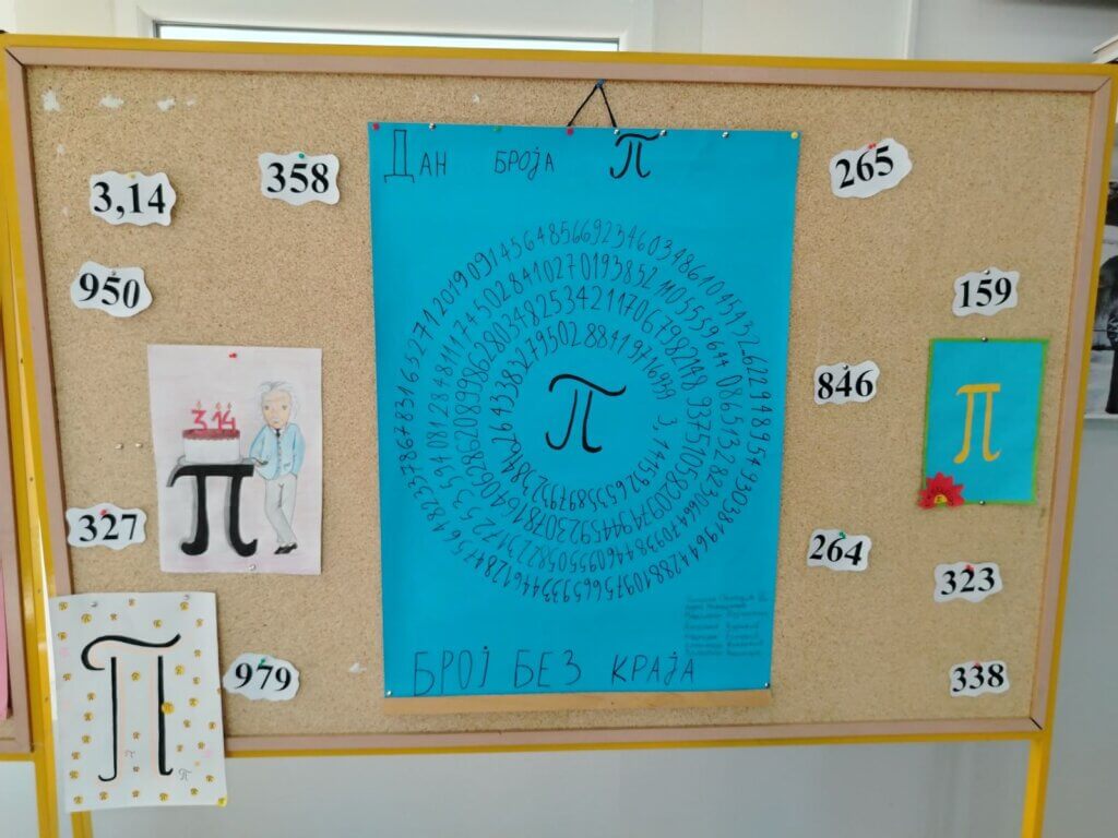 Наша школа већ четврту годину за редом 14. марта обележава Међународни данм атематике, као и Дан броја Пи (π). Наставница математике Јелена Марић је тим поводом организовала тематски дан посвећен математици, али и броју Пи (π). У првом делу дана ученици наше школе такмичили су се у меморисању децимала броја π. Најбоље резултате имале су ученице