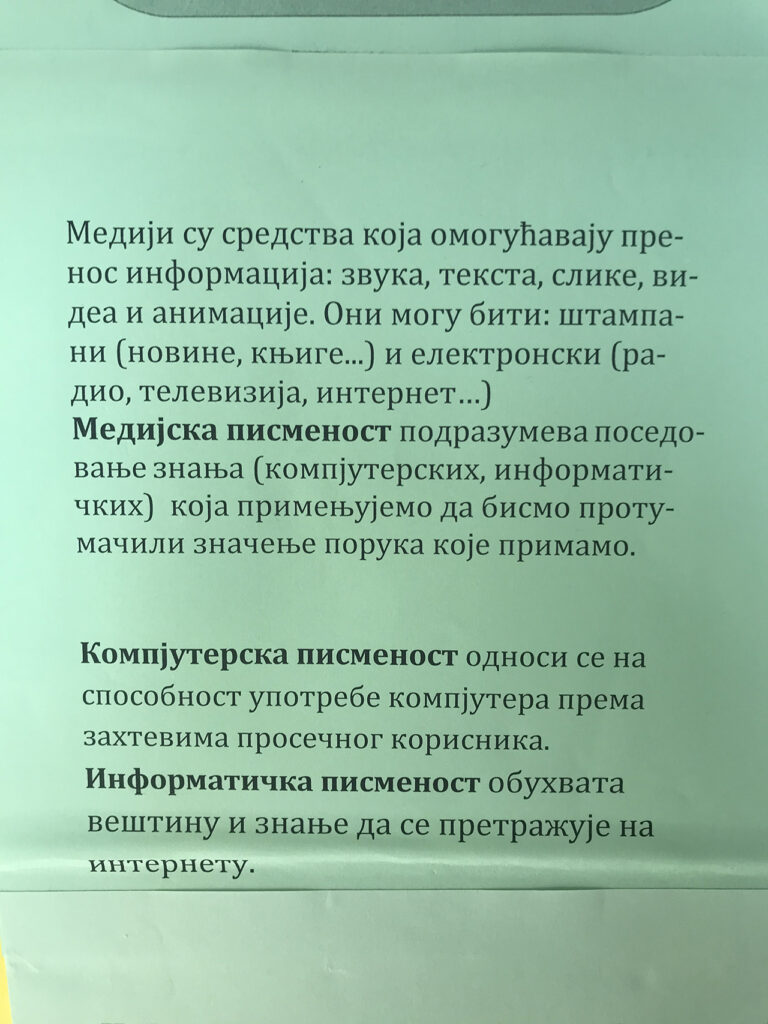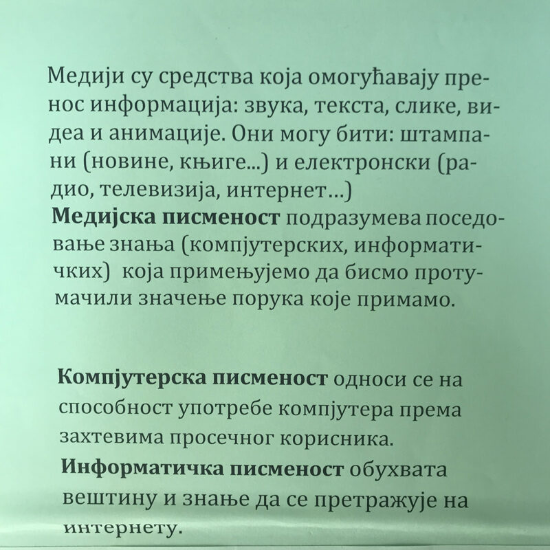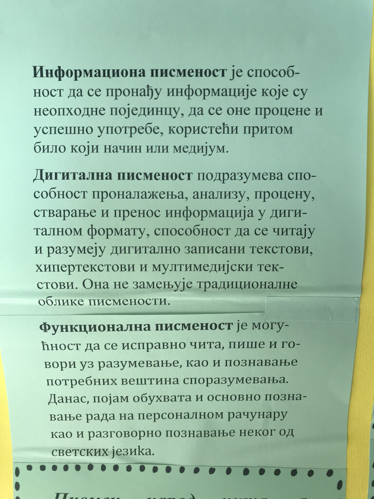 Поводом 8. септембра, Међународног дана писмености, наставница српског језика Ивана Бабић поставила је у холу школе пригодну изложбу.
