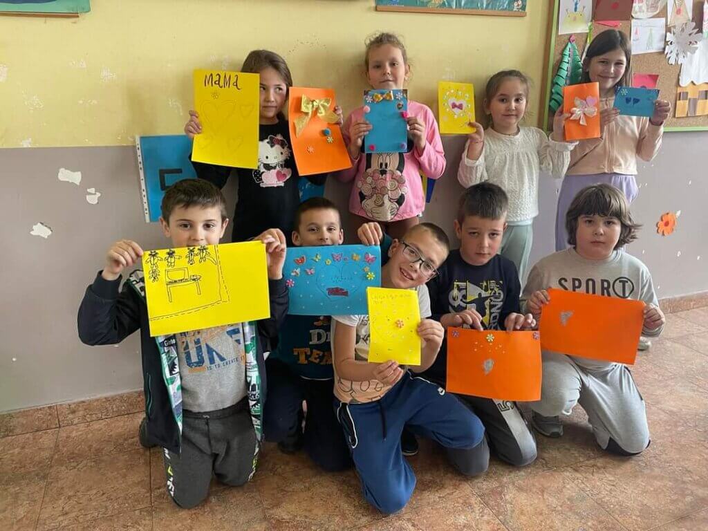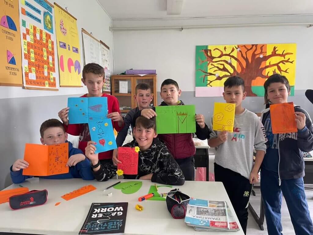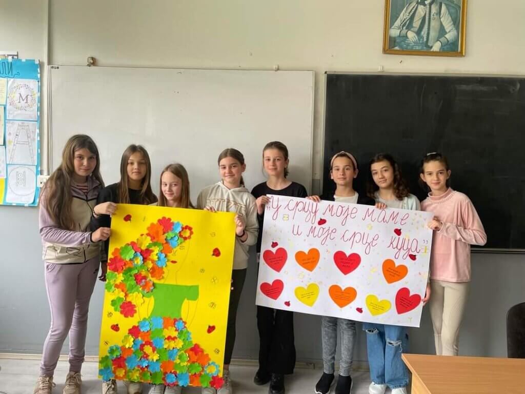 Ученици петог један су на часовима једносменског рада израђивали хамере како би украсили хол матичне школе поводом обележавања 8. марта, Дана жена. Њима су се придружили и ученици првог разреда који су правили и украшавали честитке. Њихови радови забележени су фотографијама.