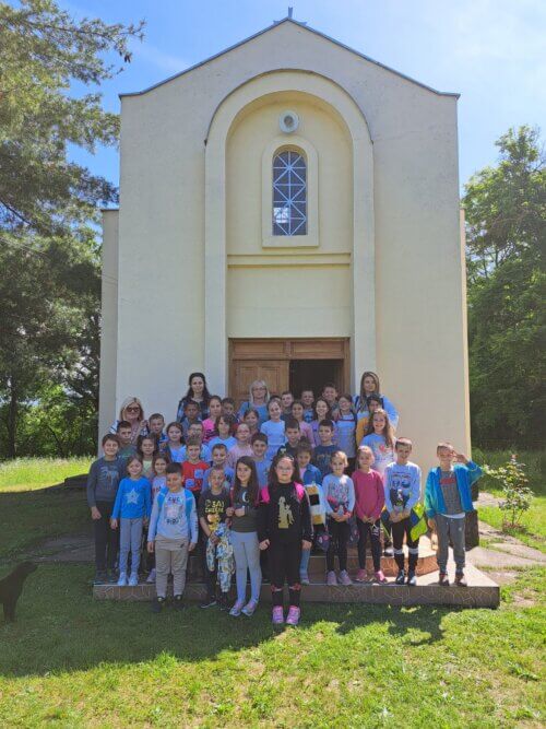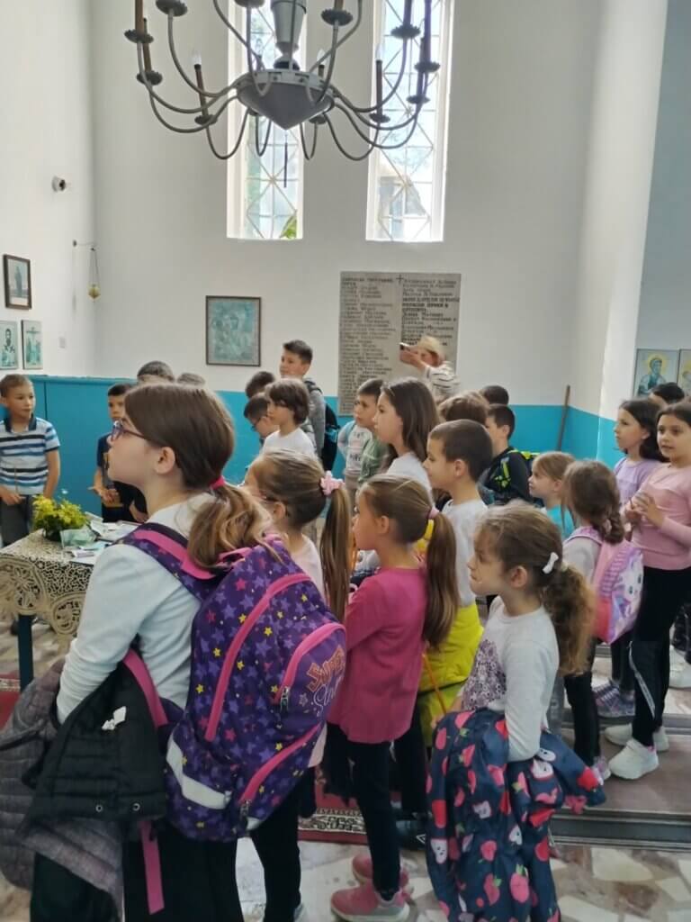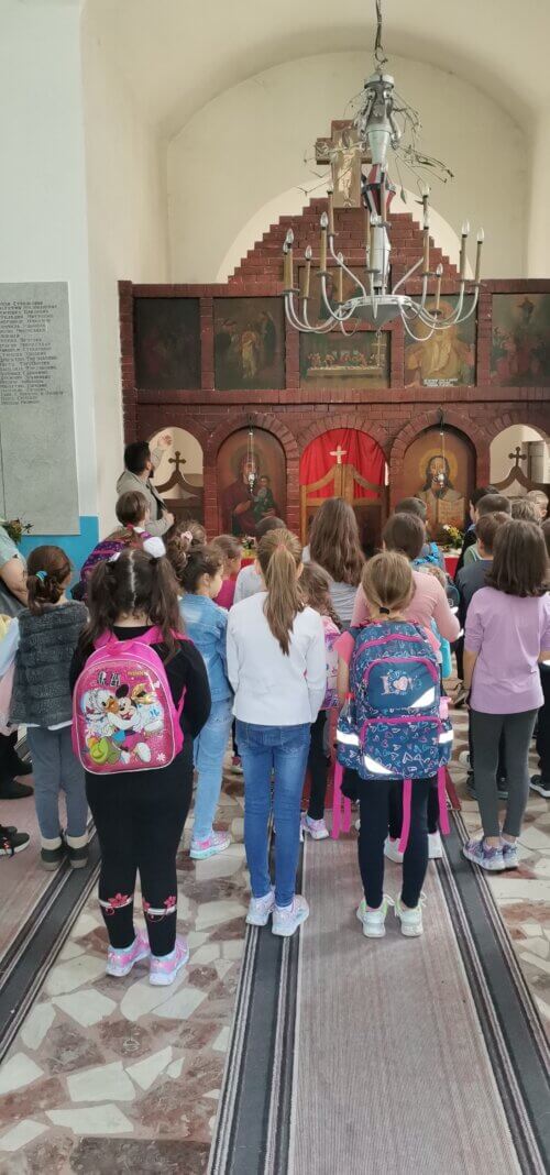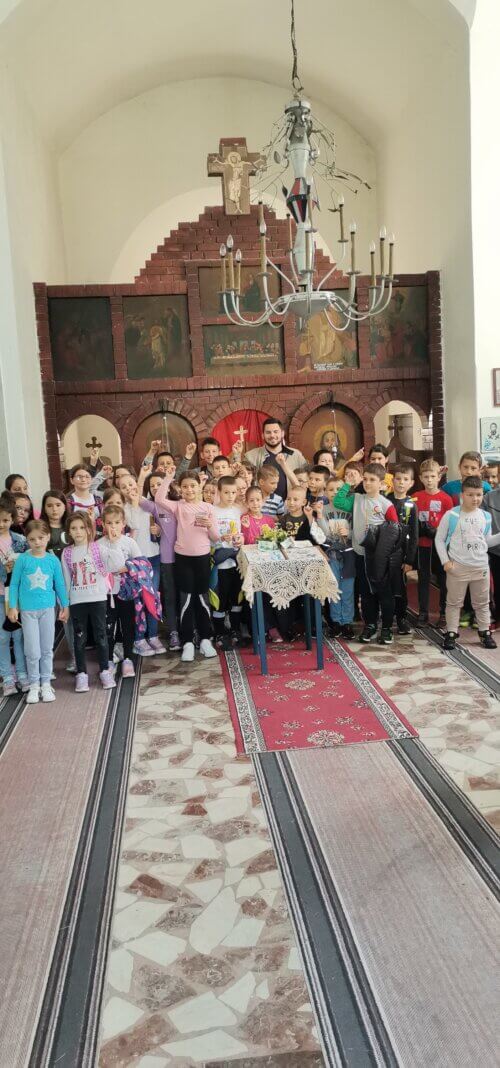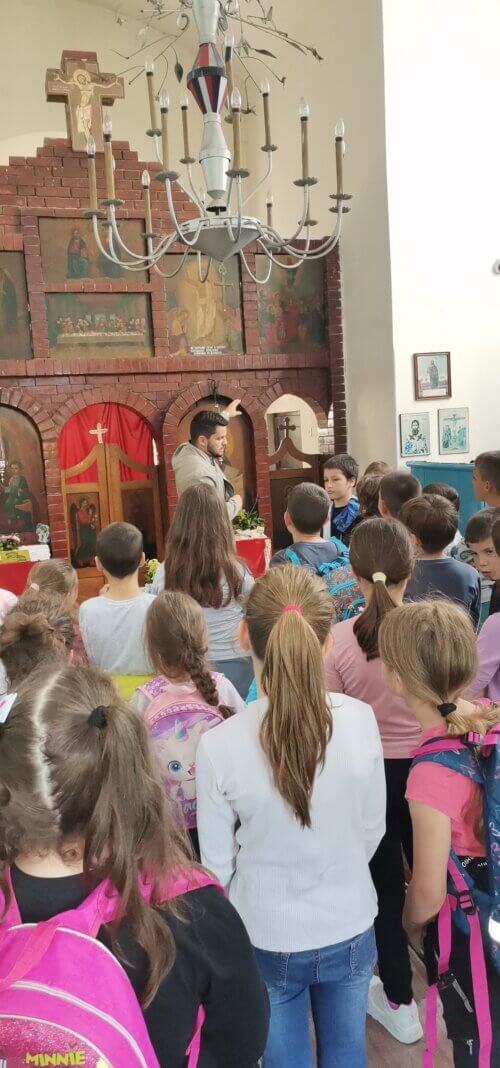 Вероучитељ је деци одржао час веронауке у цркви и на практичном примеру приближио им је веру и цркву.