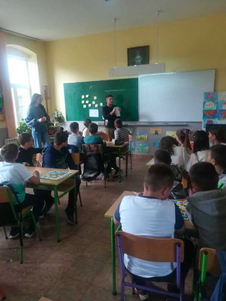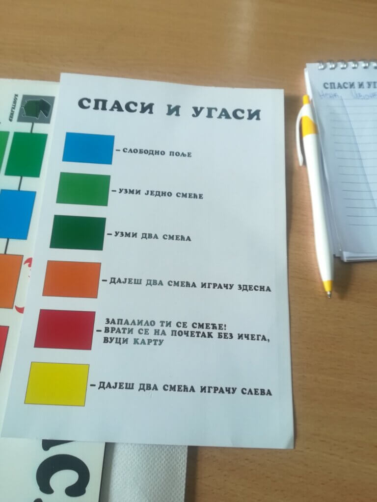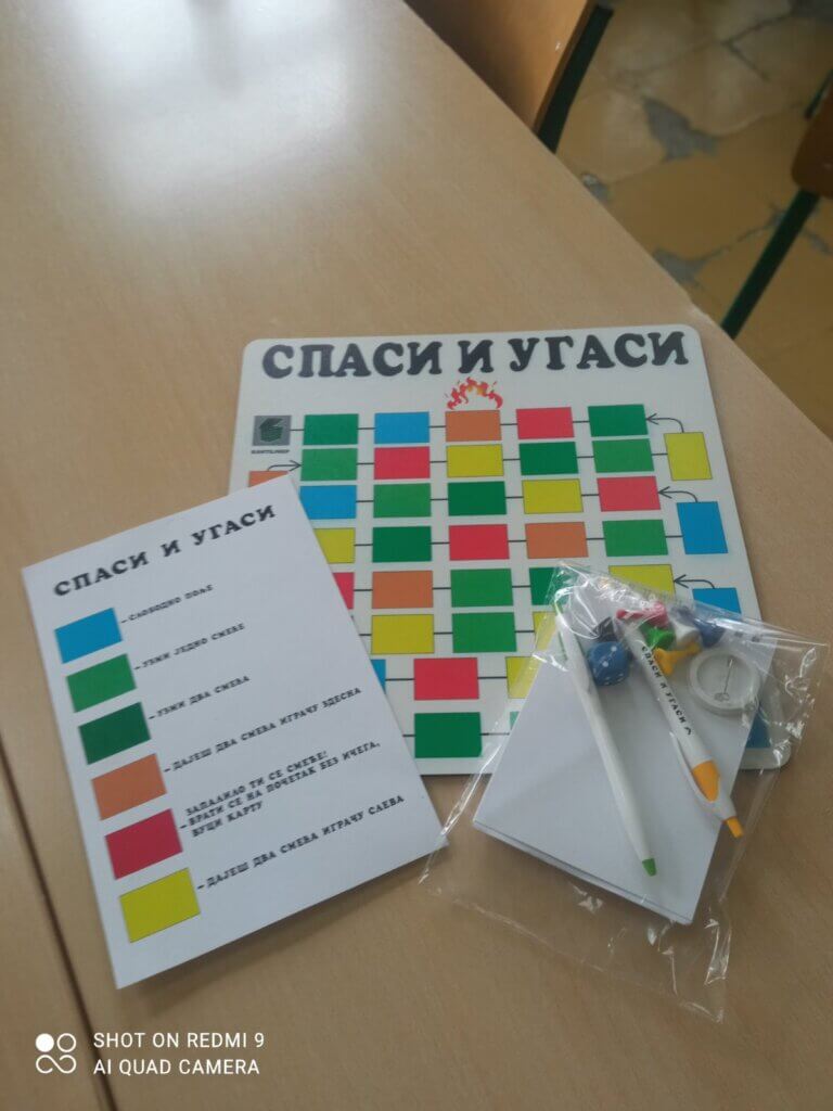 Ученици Економско-трговачке школе из Краљева посетили су деветог маја нашу школу ради представљање друштвене игре „Спаси и угаси“ уечницима од првог до четвртог разреда.