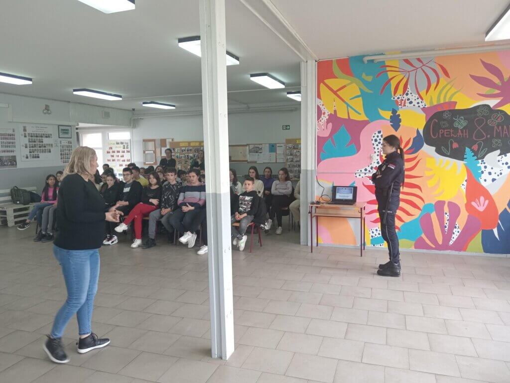 Радионица „Превенција вршњачког насиља у стварном и виртуелном окружењу“ одржана је 7.марта у холу школе за ученике шестог и осмог разреда. Догађај је организовала Полицијска управа у Краљеву, у оквиру пројекта „Заједно и безбедно кроз детињство“, чији је циљ подизање свести ученика основних школа о последицама насилног понашања у стварном и виртуелном окружењу, учење вештине ненасилног решавања конфликата и помоћи другима у невољи.