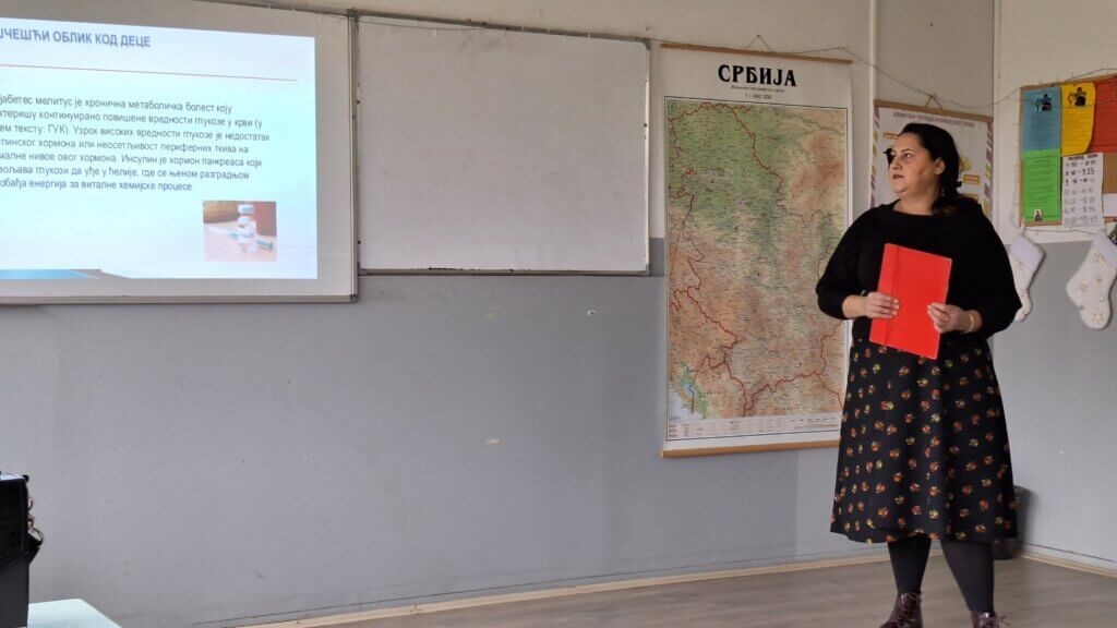 Овим предавањем указала је на симптоме како препознати ученике који болују од дијабетеса и како им помоћи.