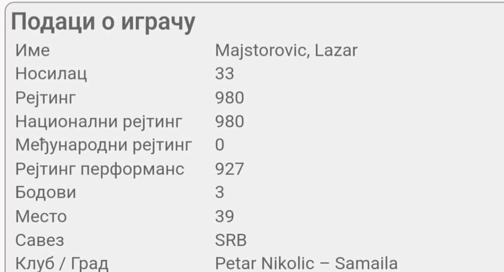 У основној школи „Момчило Живојиновић“ у Младеновцу 6. априла одржано је Републичко такмичење у шаху за ученике основних школа у Србији. О каквој масовности такмичења је реч, говори податак да је на њему учествовало преко 900 такмичара из основних школа широм Србије. Нашу школу представљао је Лазар Мајсторовић ученик 7. разреда са својим ментором наставником физичког васпитања Ненадом Димићем, Лазар је заузео 39. место у Републици. Честитамо Лазару на огромном успеху који је достојно представио нашу школу и наш град.