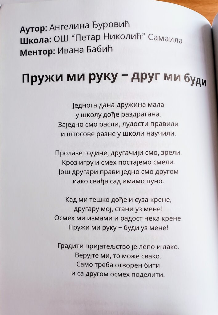 поетски радови три наше ученице: Ангелине Ђуровић (седми разред),