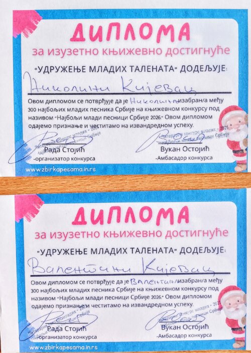 Николине Кијевац (осми разред) и Валентине Кијевац (осми разред).