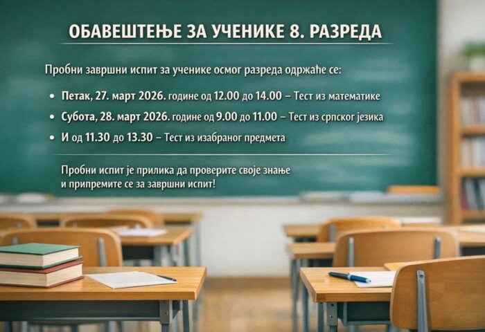 Обавештење о спровођењу избора уџбеника за школску 2026/2027. годину можете преузети на следећем линку fhttp://skolasamaila.edu.rs/wp-content/uploads/2026/02/Obavestenjeo-pocetku-spr.izb_.udzbenika-06.02.2026.-10.49.pdf